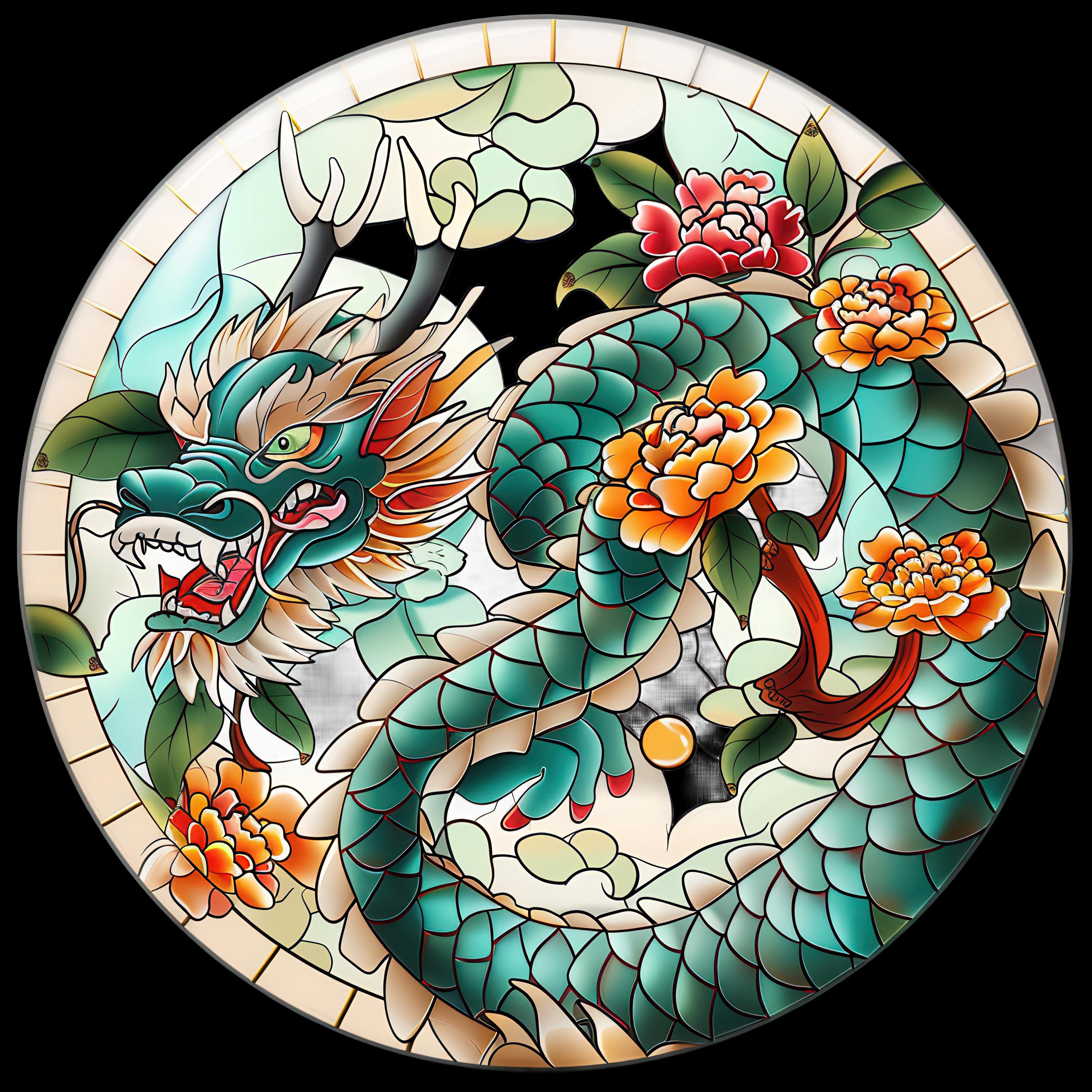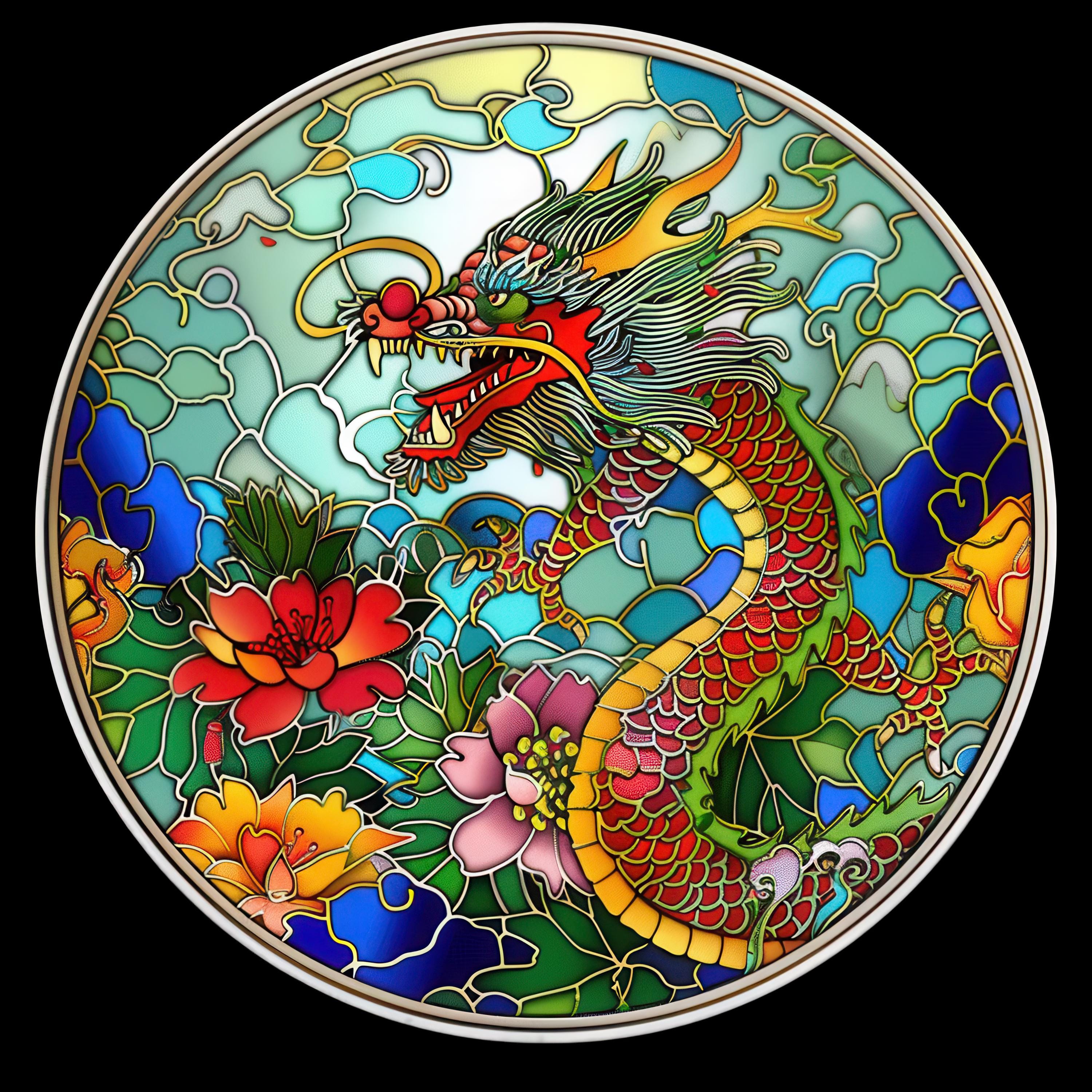 Acrylic Faux Asian Dragons Stained-Glass Suncatcher