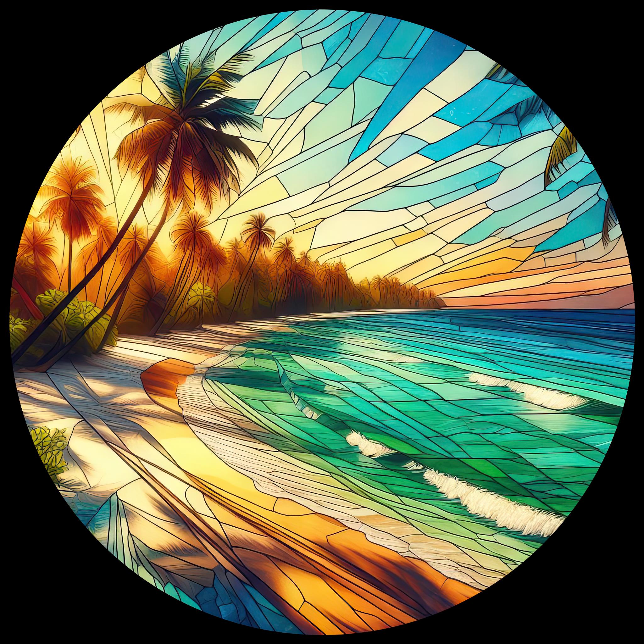 Acrylic Faux Stained-Glass Tropical Beach Sunset Suncatcher