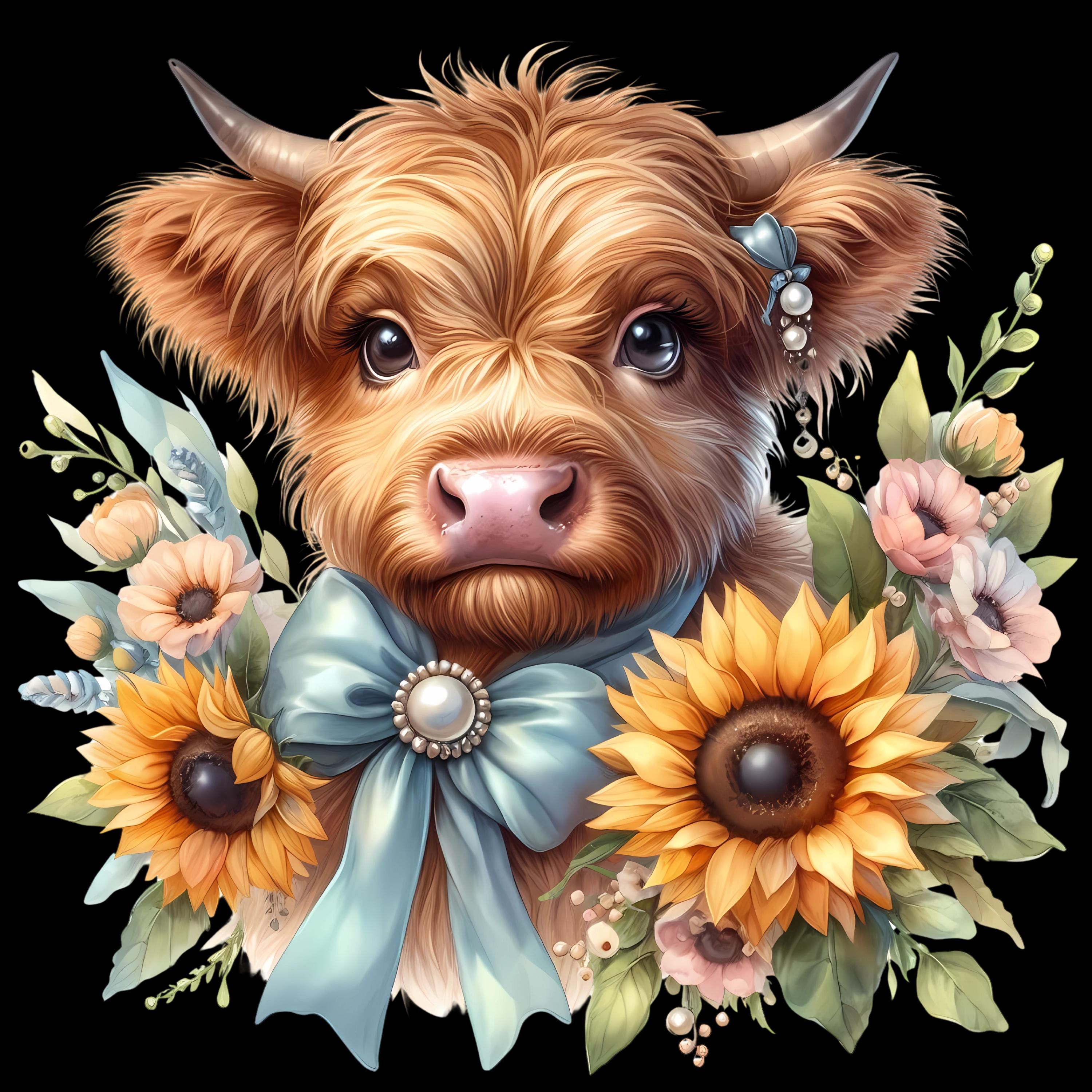 Highland Cows with Sunflowers DTF Transfer
