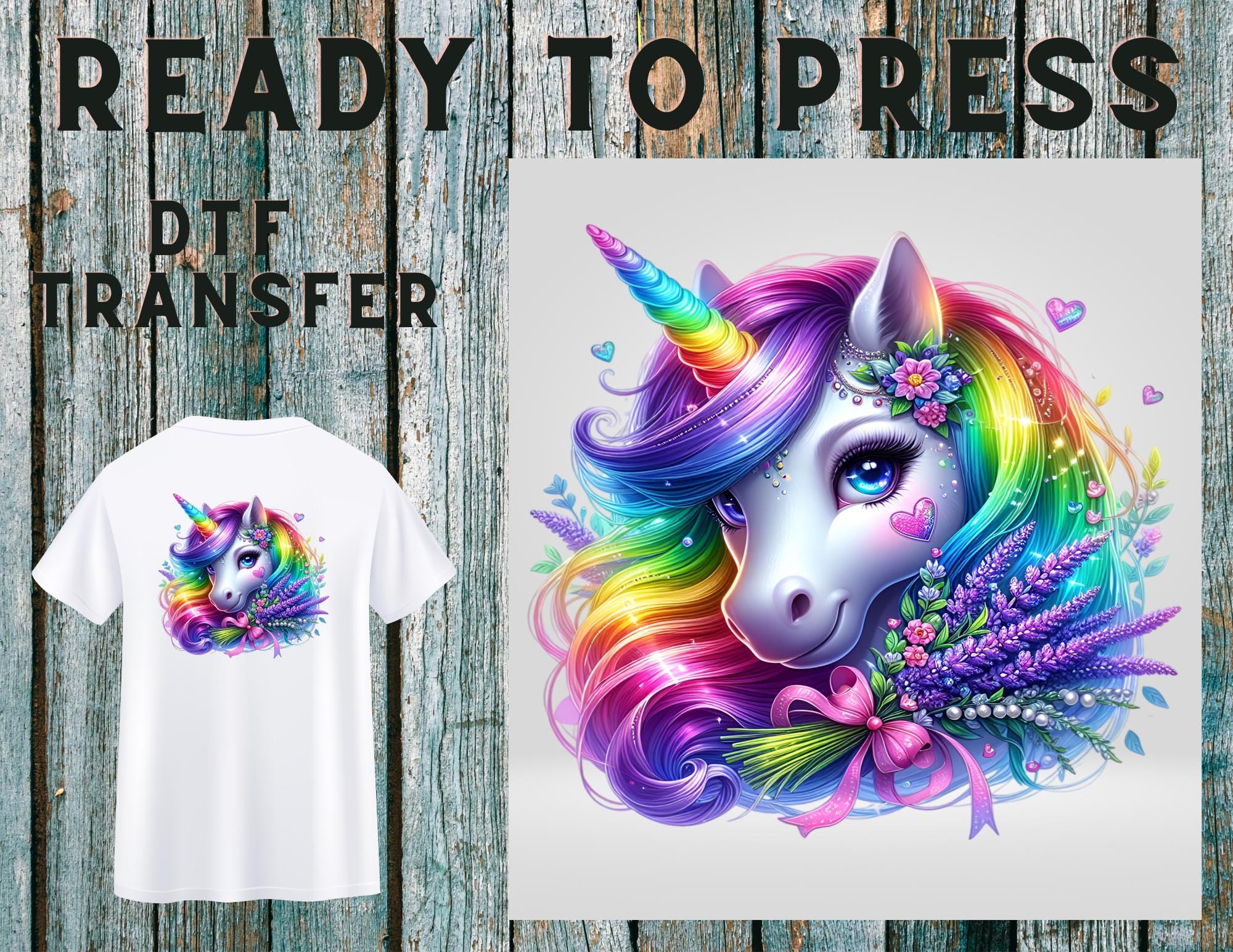 Floral Rainbow Unicorn DTF Transfer