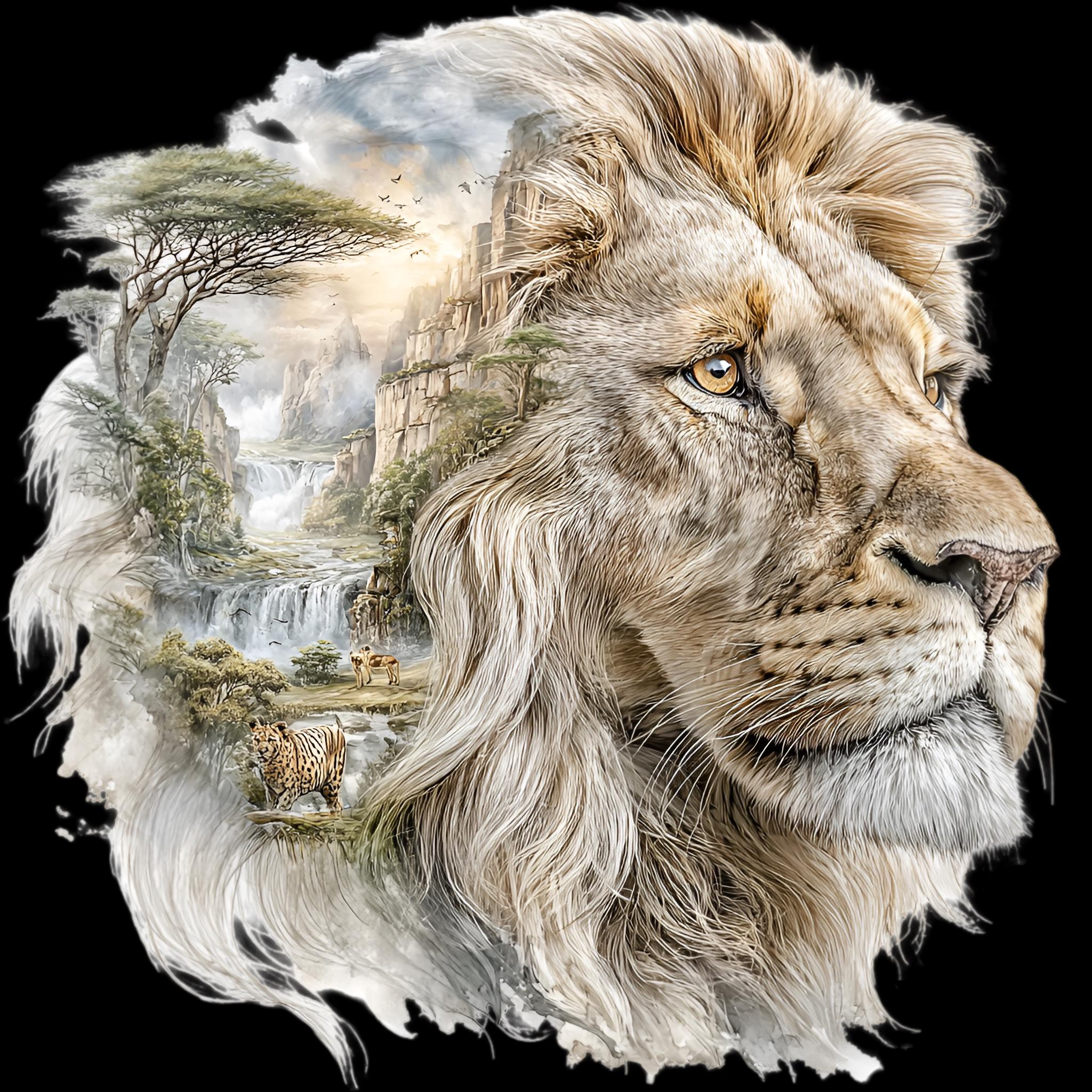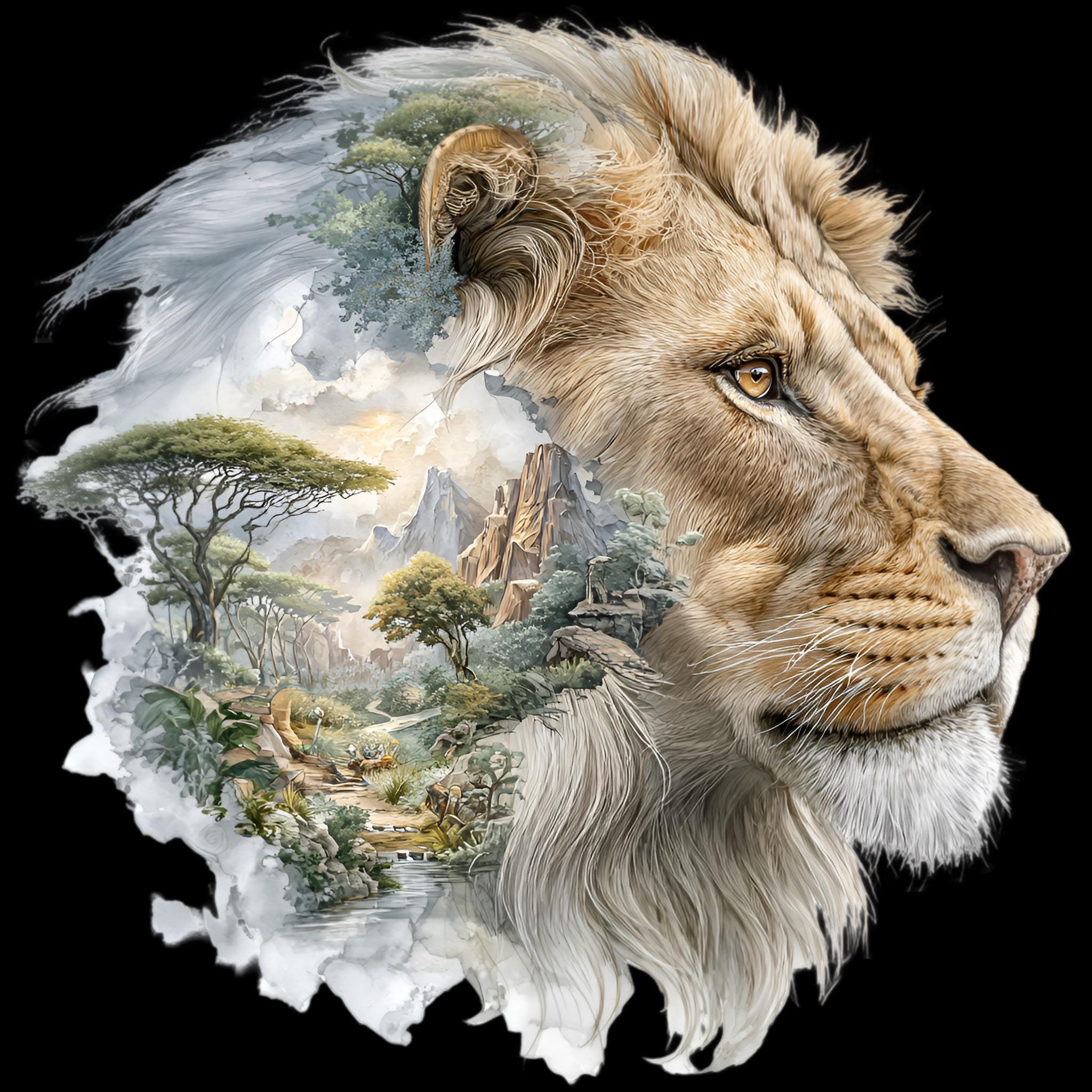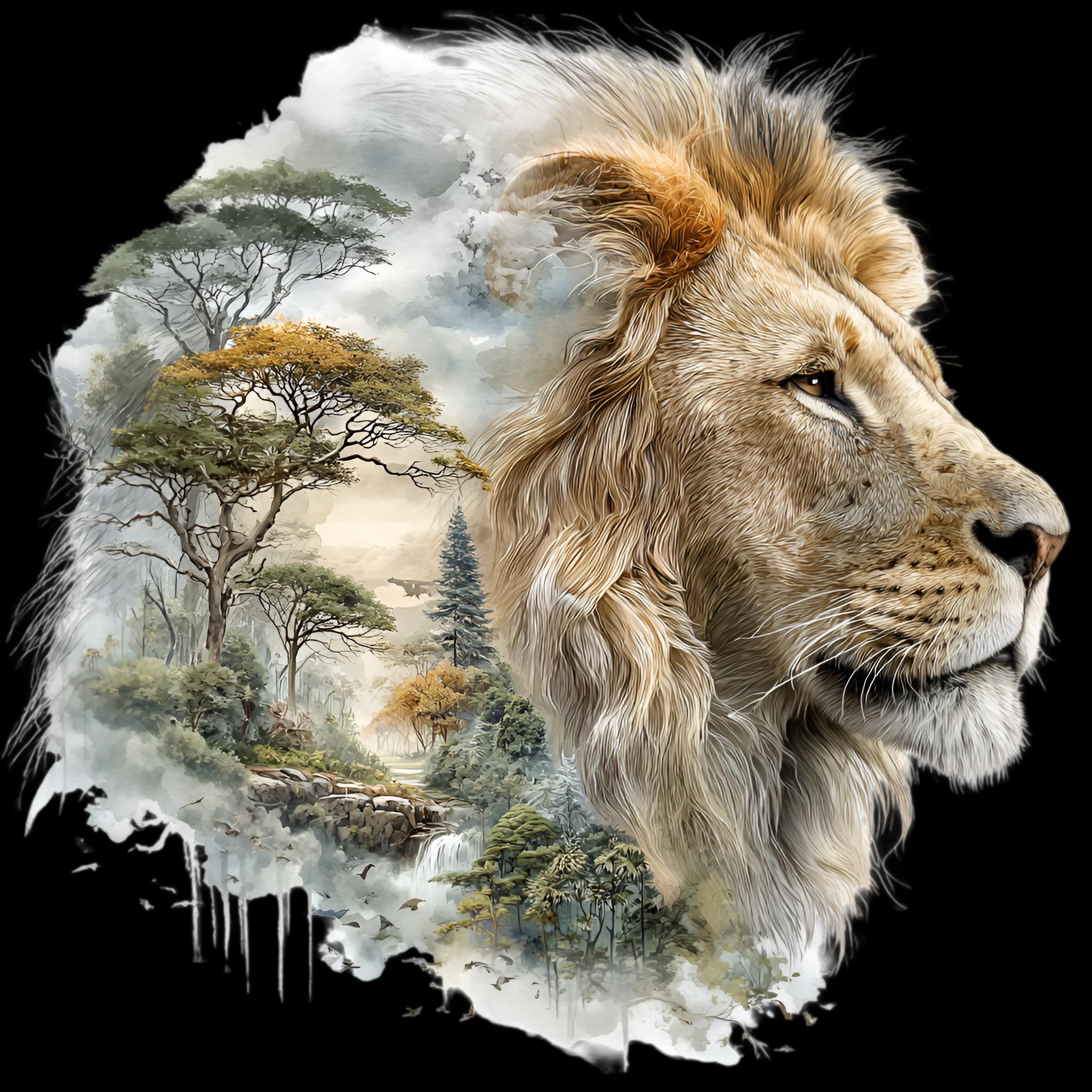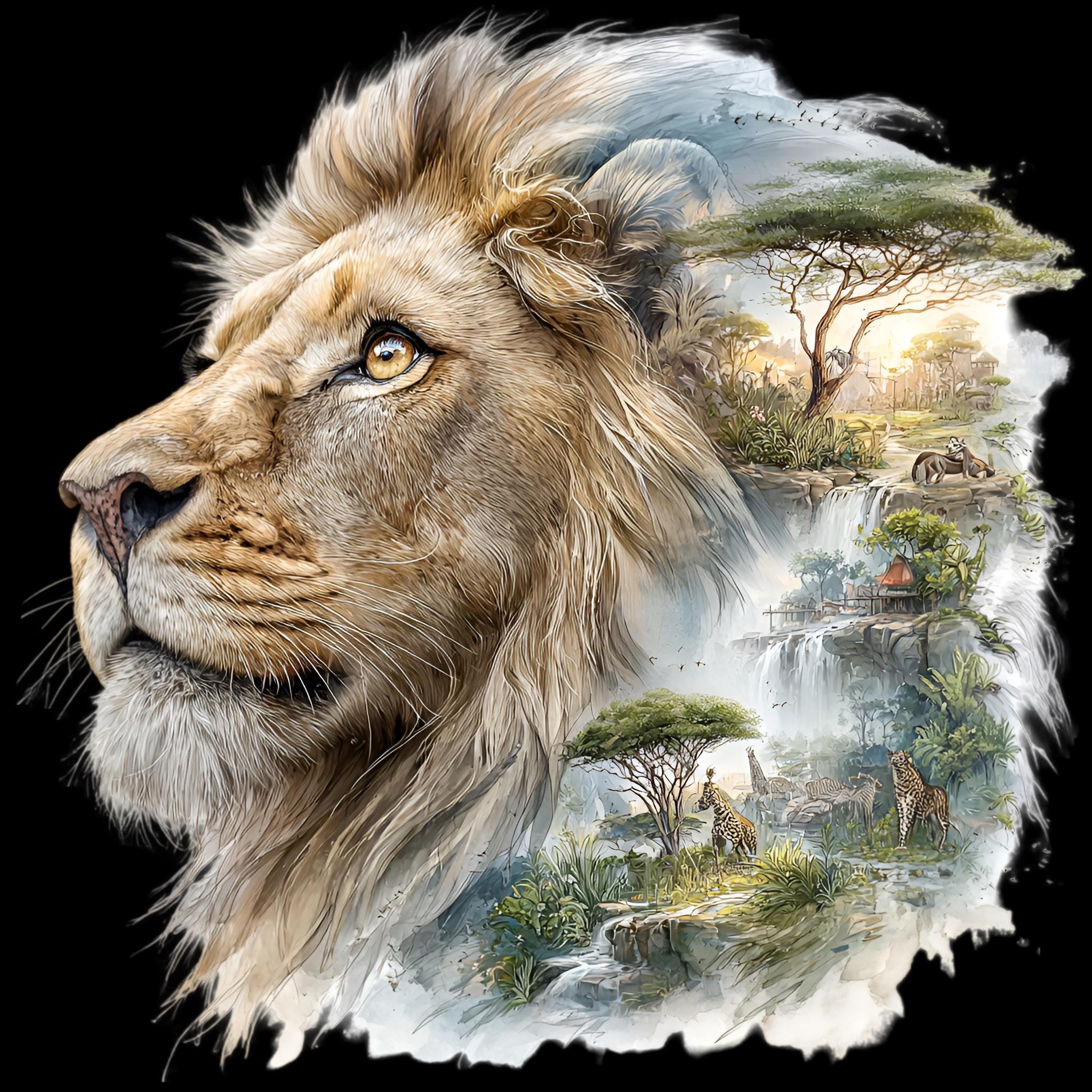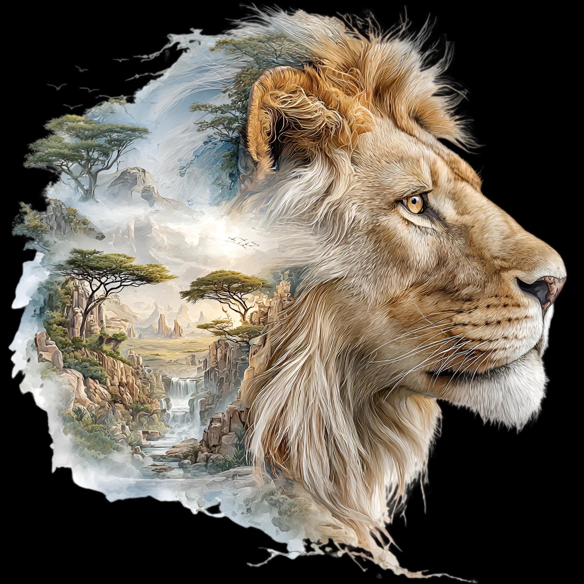Lion Savannah Double Exposure DTF Transfer