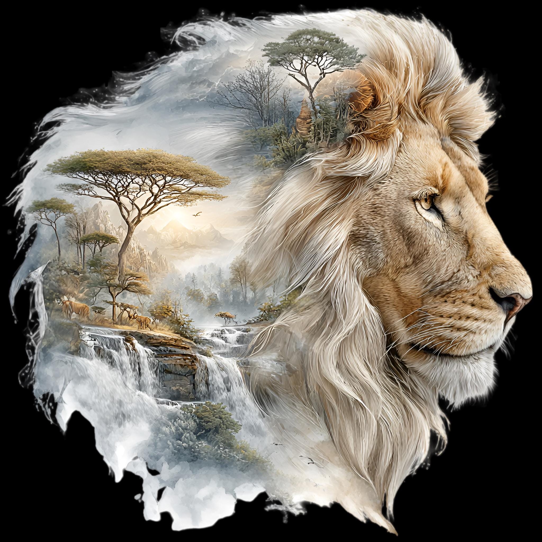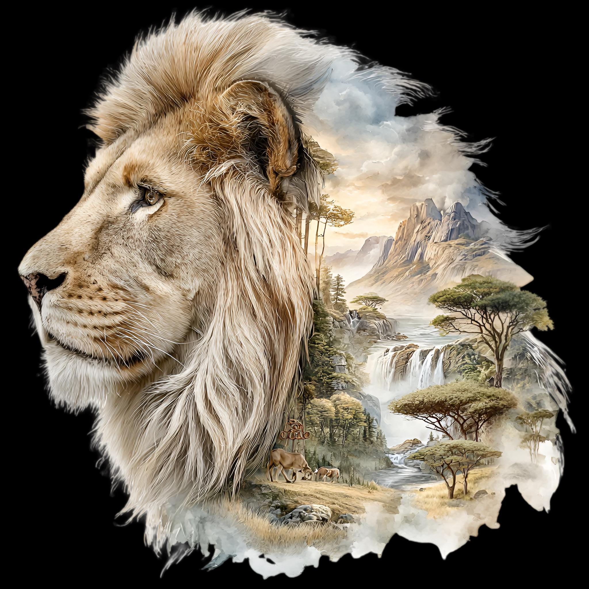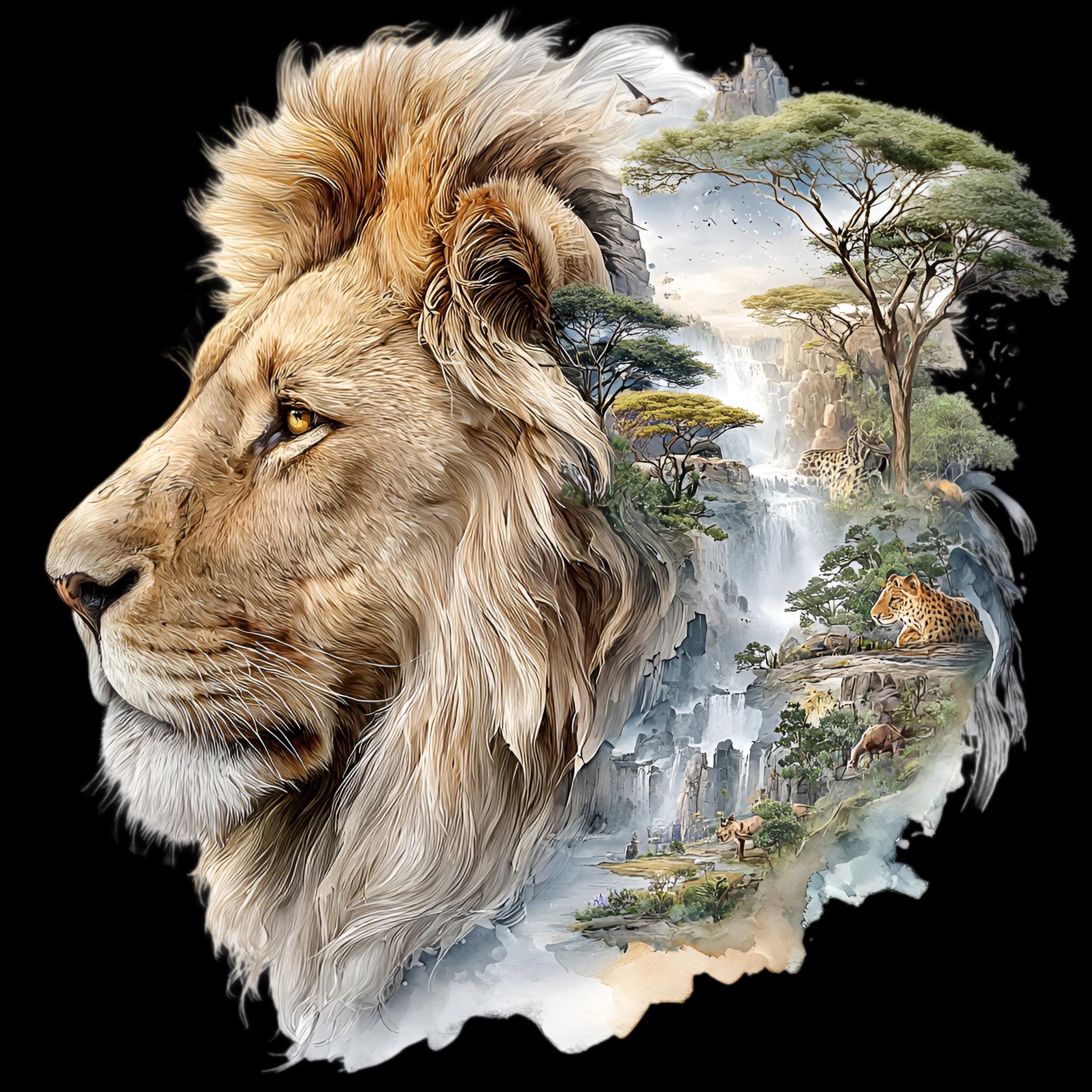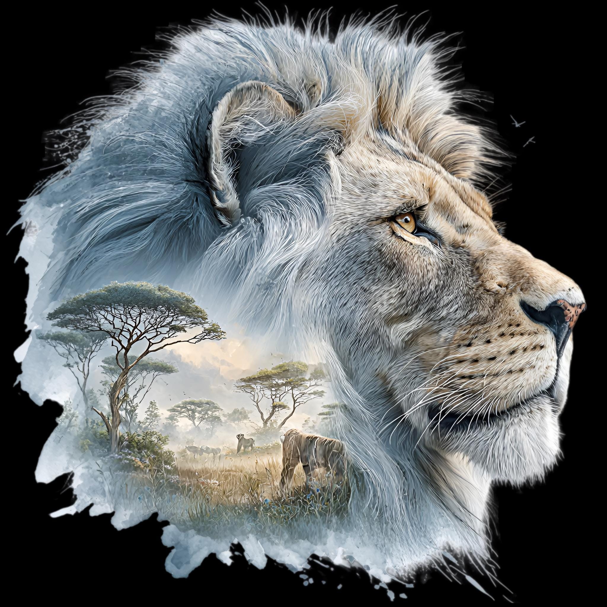 Lion Savannah Double Exposure DTF Transfer