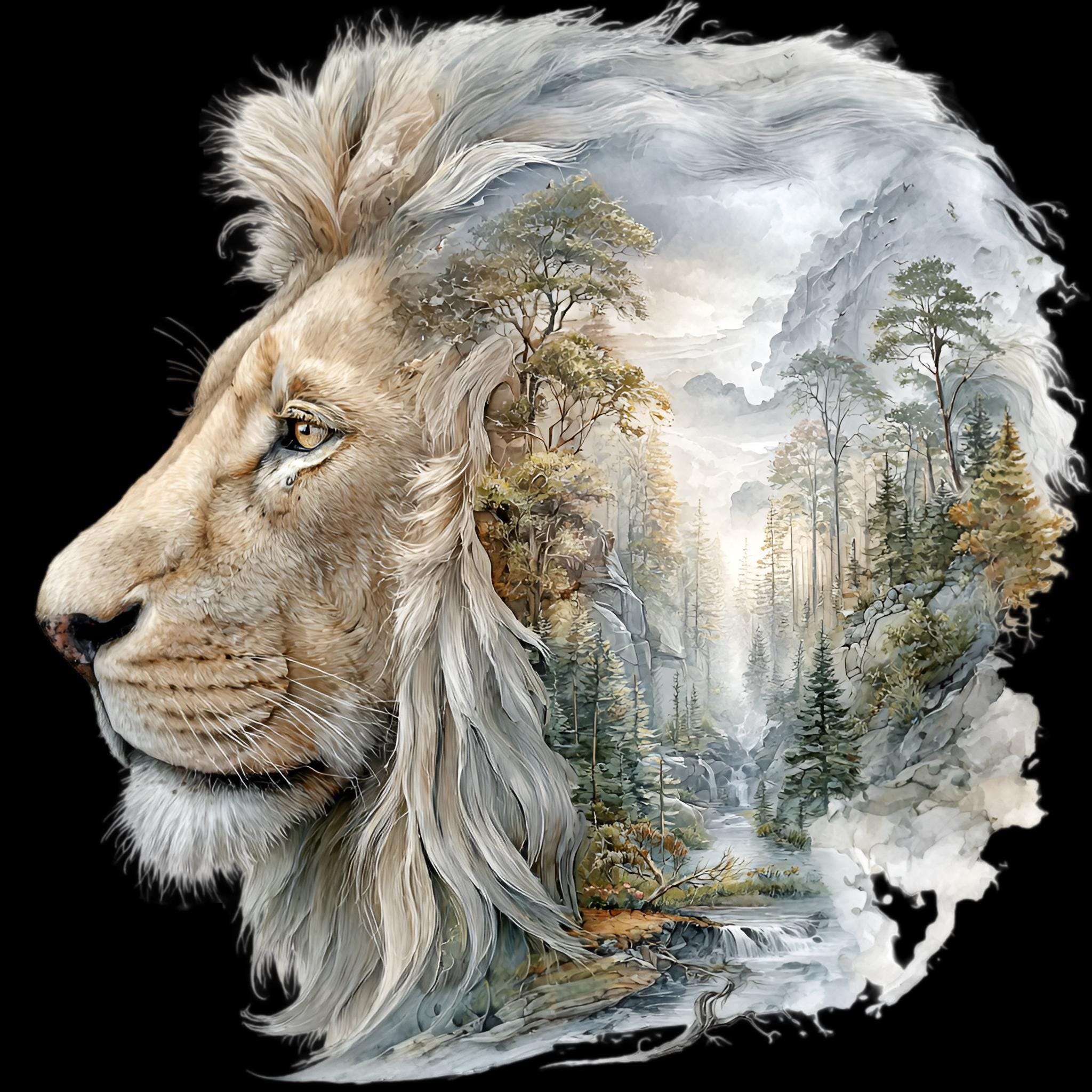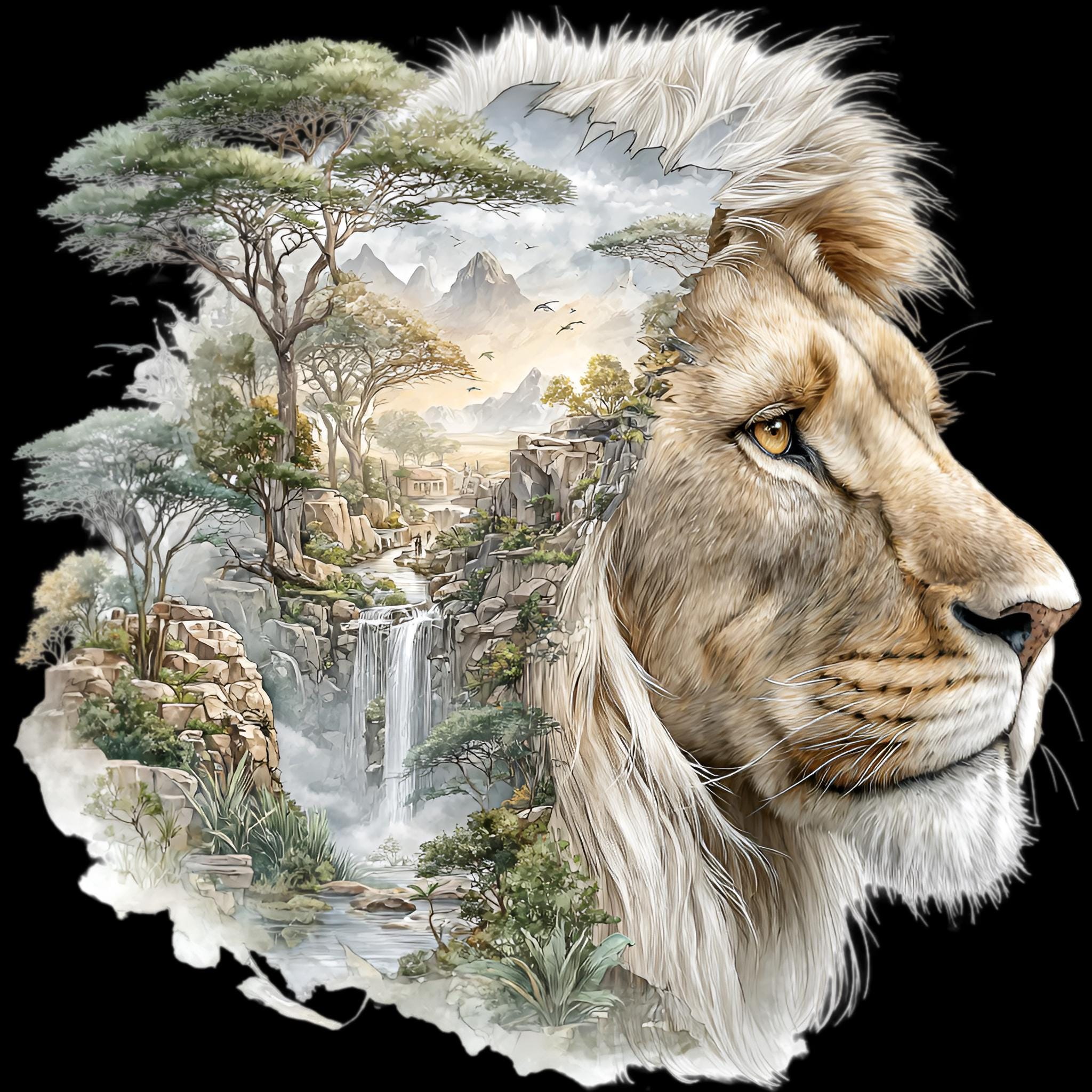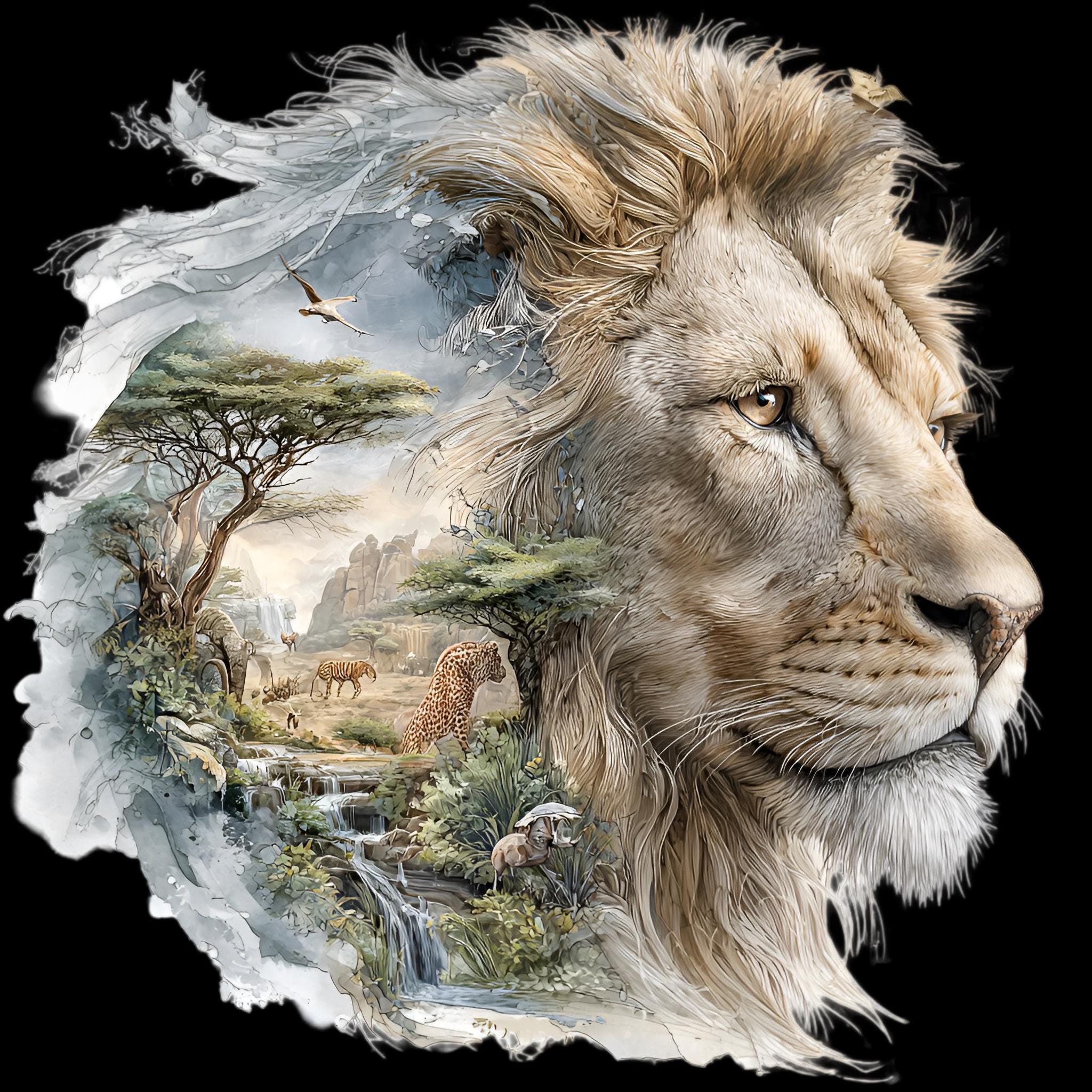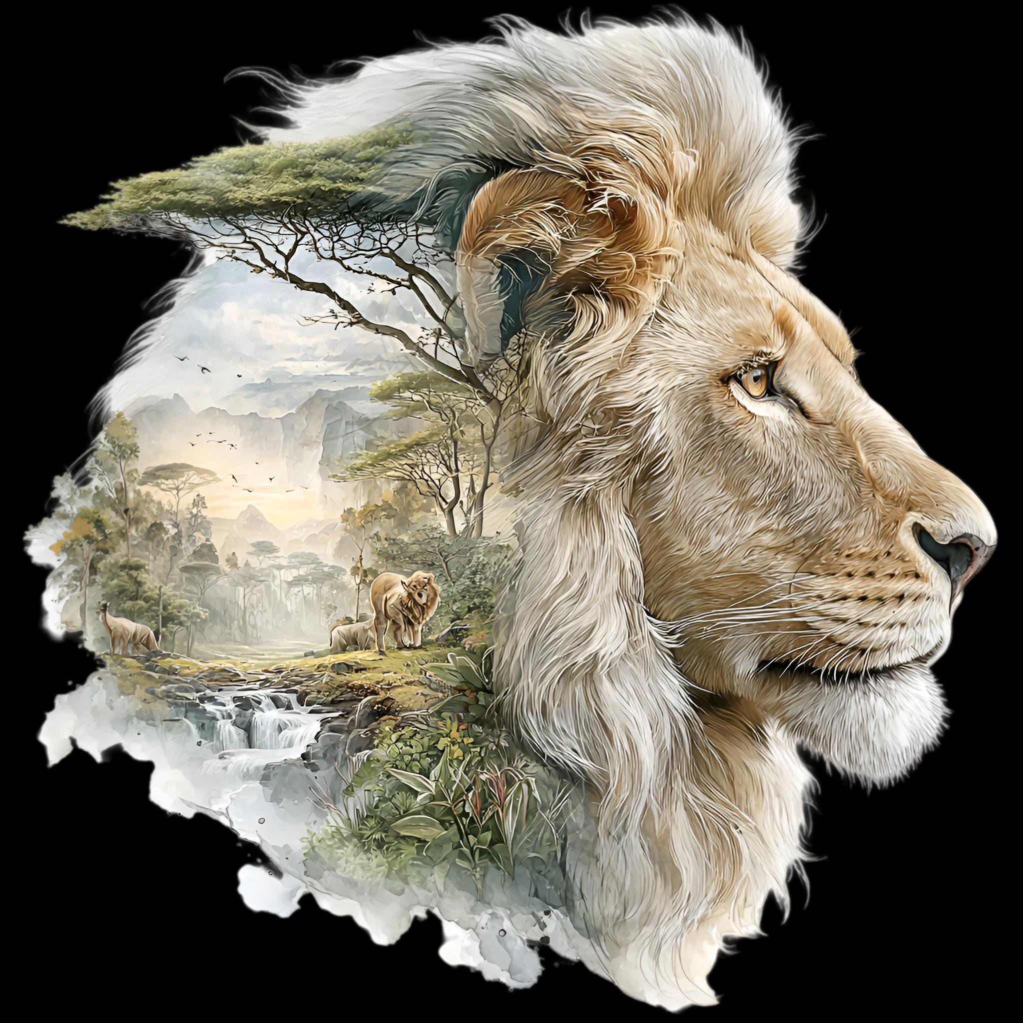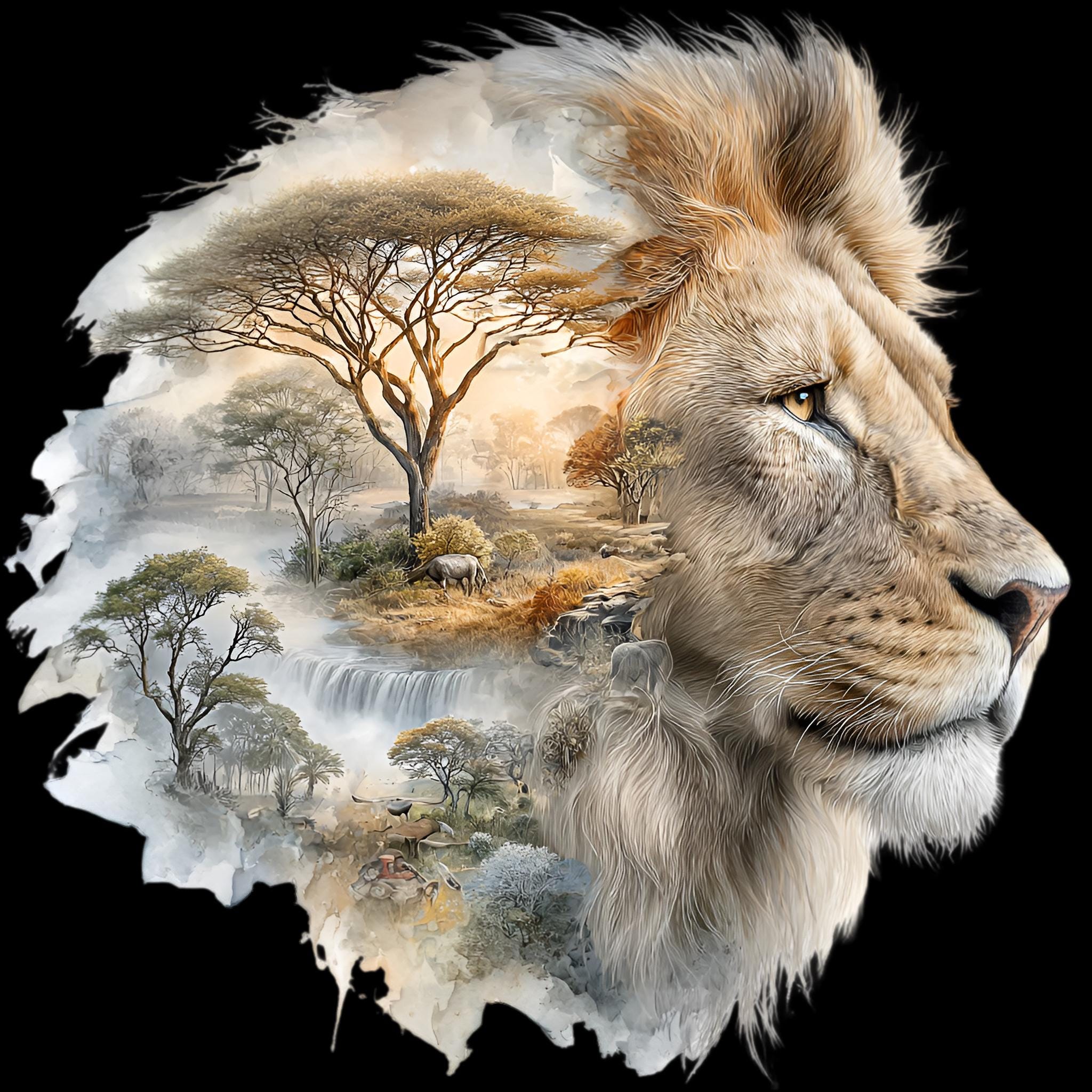 Lion Savannah Double Exposure DTF Transfer